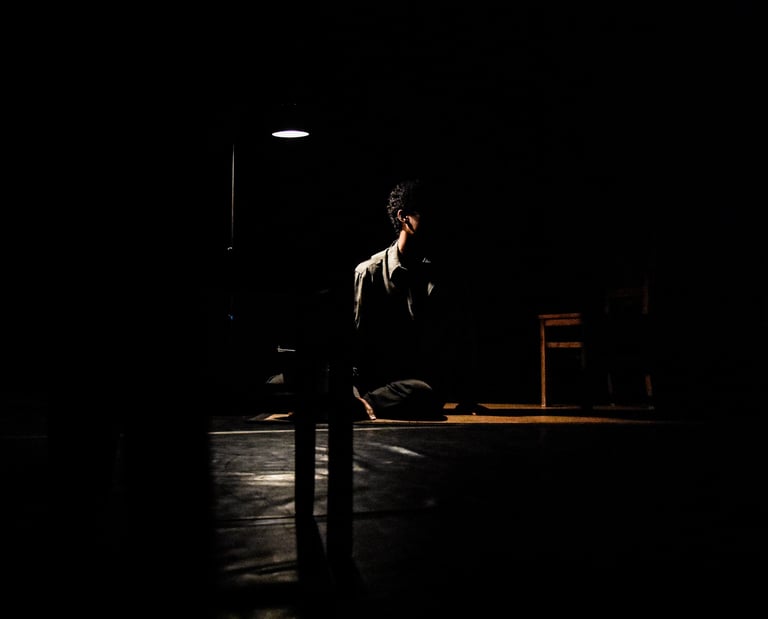 O espetáculo-performance sonoro, visual e de movimento, convida o público a querer descobrir aquele lugar, marcado por uma luz ténue, que não deixa ver muito, até que os sons vão aumentando de intensidade, marcados por movimentos de dois corpos em cena, várias sombras e projeções.