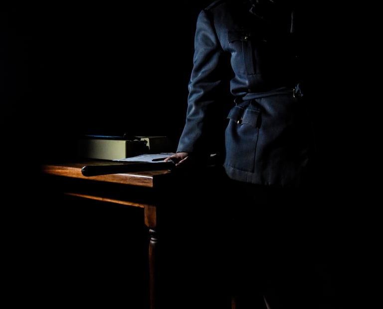 Os elementos sonoros, visuais e cenográficos implementam a dramaturgia que se associa à memória de lugares em particular da História recente de Portugal: a Rua António Maria Cardoso e o antigo edifício da PIDE - Polícia Internacional e Defesa do Estado, a antiga cadeia atual Museu do Aljube, e outros espaços de tortura.